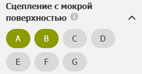 При выборе шин на нашем сайте вы можете выбрать фильтр — «Сцепление с мокрой поверхностью», установив нужное значение, где А — максимальное значение, G — минимальное. Тормозной путь шин класса А и F очень отличается друг от друга. При скорости автомобиля 80 км/ч, тормозной путь шин F класса будет на 18 метров больше, чем у шин А класса.